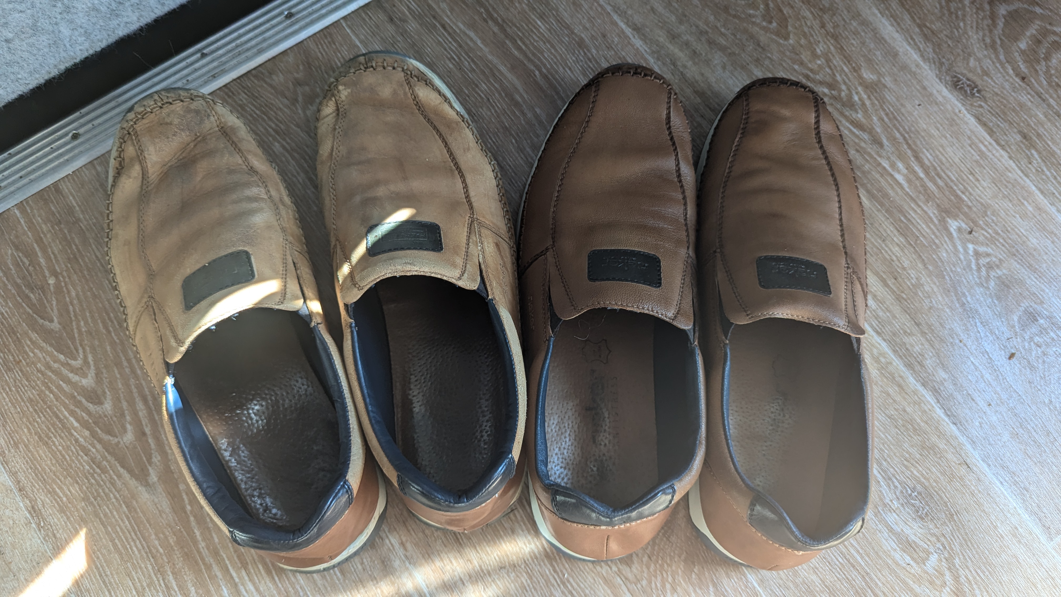 The Rieker slip-on purchased a year ago have, after 3,488 miles of use, finally worn through,