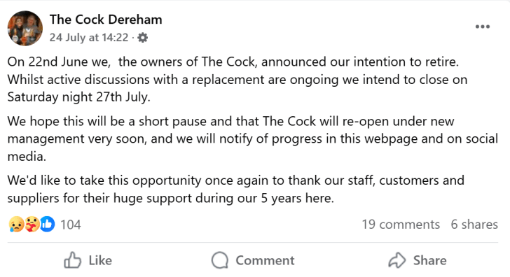 8pm seems unusually early to close, but many town pubs don’t bother at all with Mondays (or Tuesdays, or Wednesdays…), so it was always impressive the Cock opened at 11am each day.