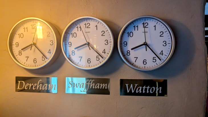 We entered the Cock at 19:12, and although it was supposed to close at 20:00, the clocks show we were there well past kicking-out time.