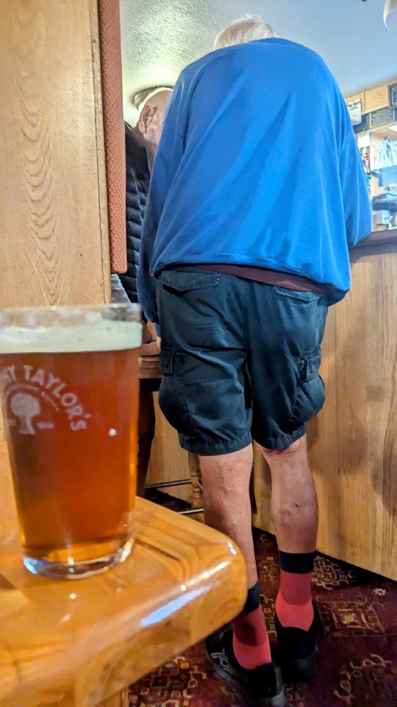 which alarms me a bit, but he doesn’t think my Two Brewers looks clear so he takes it away and brings back another one (NBSS 3.5+). AND 35p difference in the pints. I applaud that, and the Gents humour (top). Well, sort of.