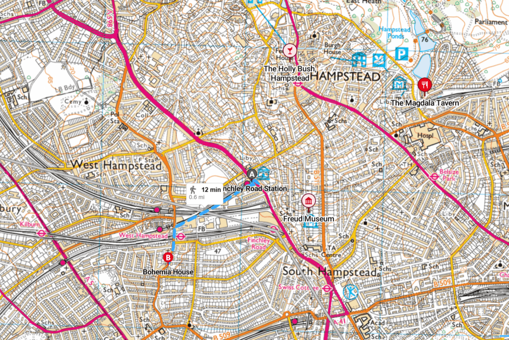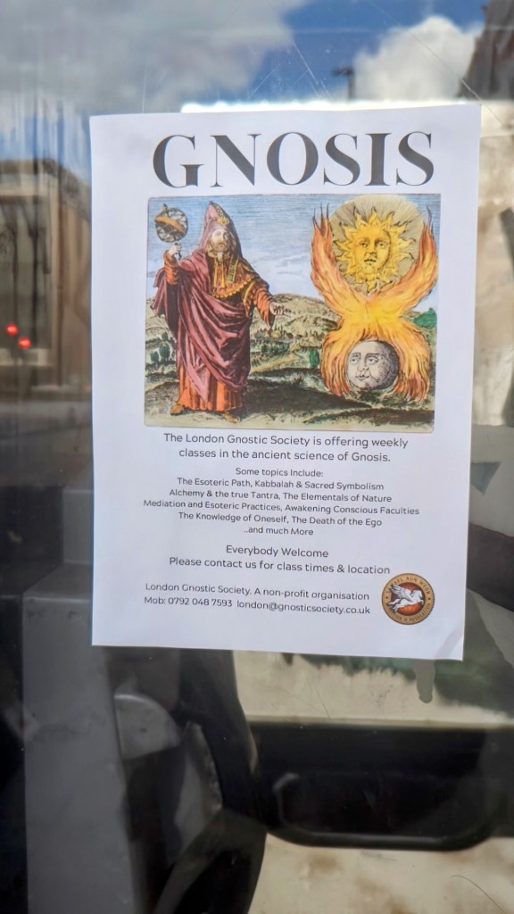 The Freud museum to the east, Hampstead Heath with Bass at the Magdala to the north, and unknown pleasures out west. And Gnosis.
