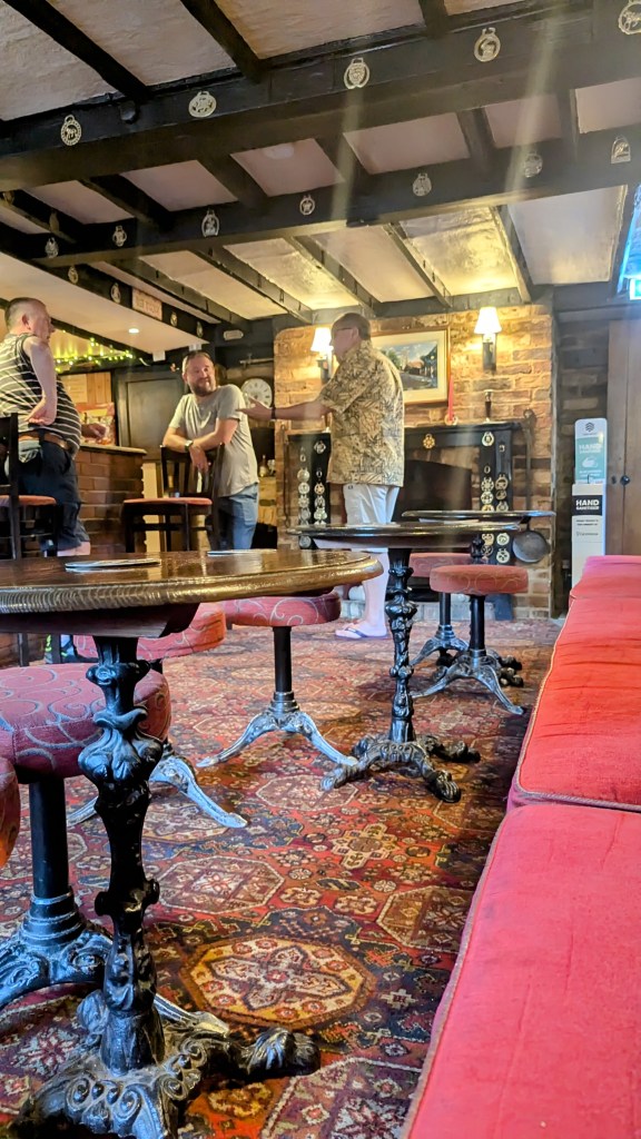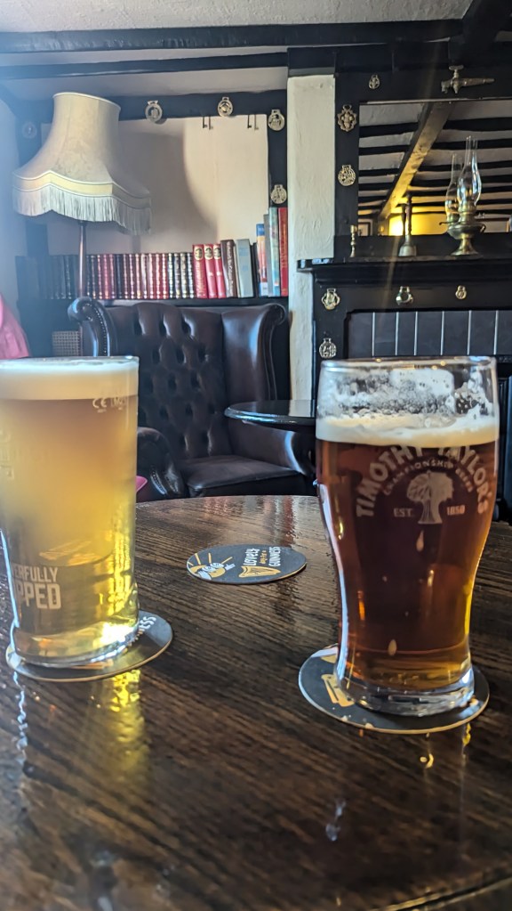 But I’ve always wanted to diffuse the tension in the air, and head back to the bar for a pint of Wherry and a chat with the landlord about trade and branded glasses, which seems to soften him.