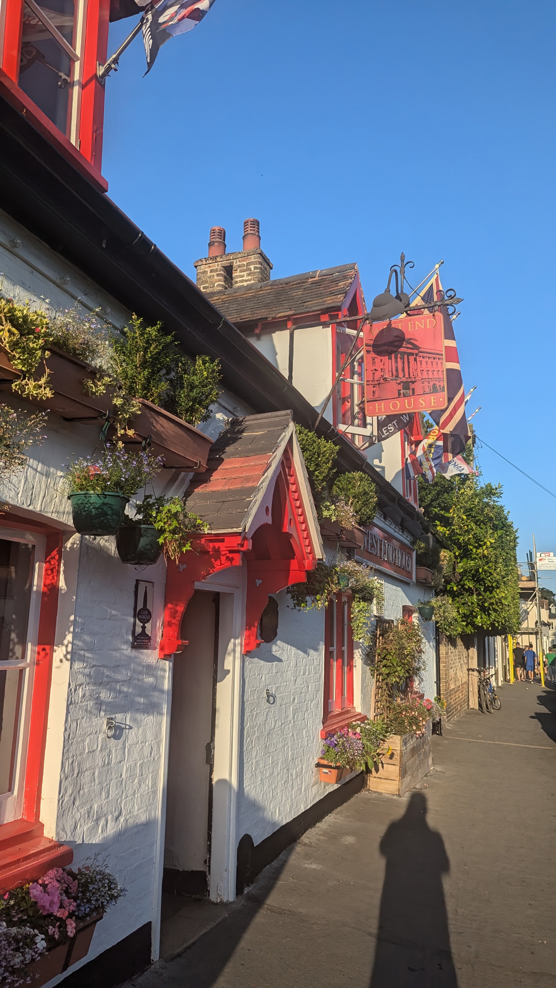 It’s a Proper Pub, with proper beer, although stiflingly hot tonight and the other customers drift out to the garden to talk about obscure Olympic sports (“Any ****** can do BMX“).