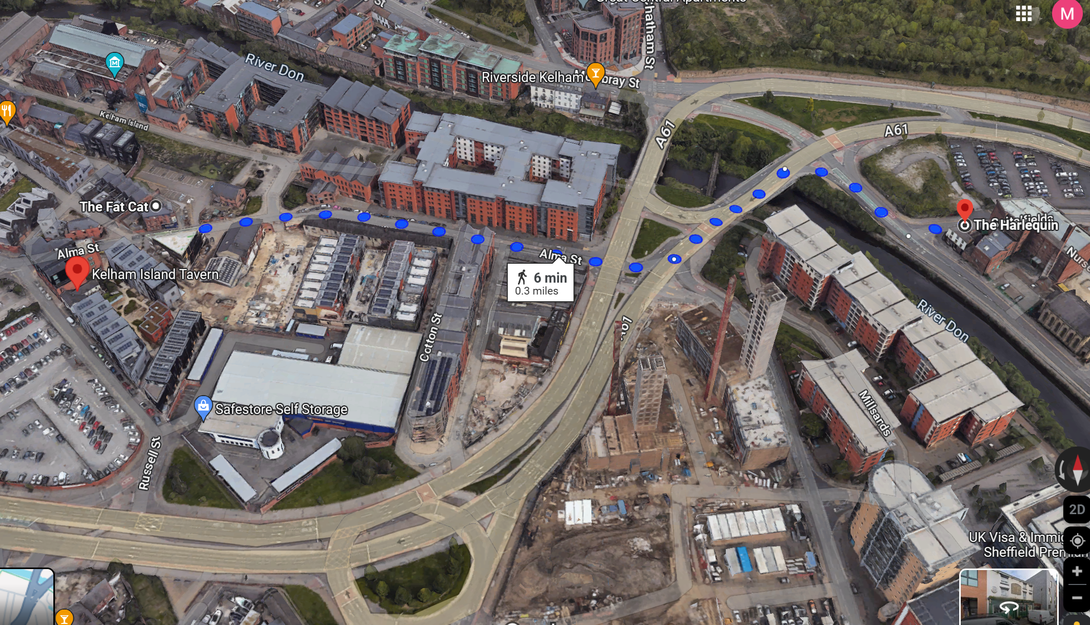folks, it takes six (6) minutes walk from the Fat Cat and KIT across the Don and its Impatiens Glandulifera.
