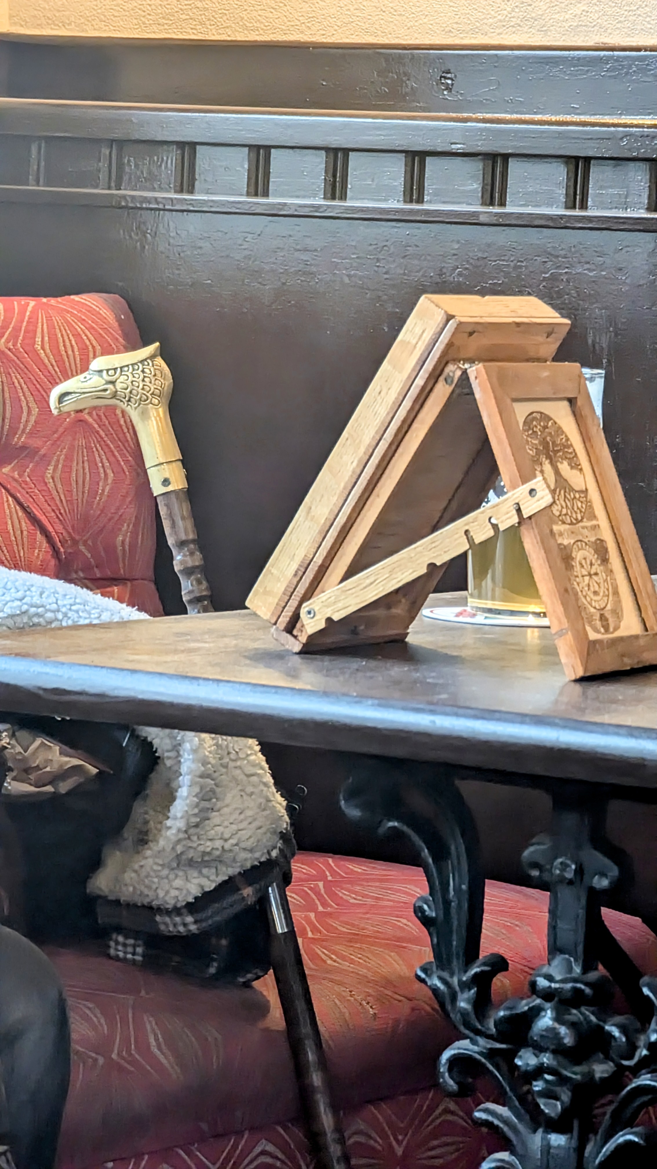 And what on earth is that on the table occupied by the well-dressed gent with the Mary Poppins stick.