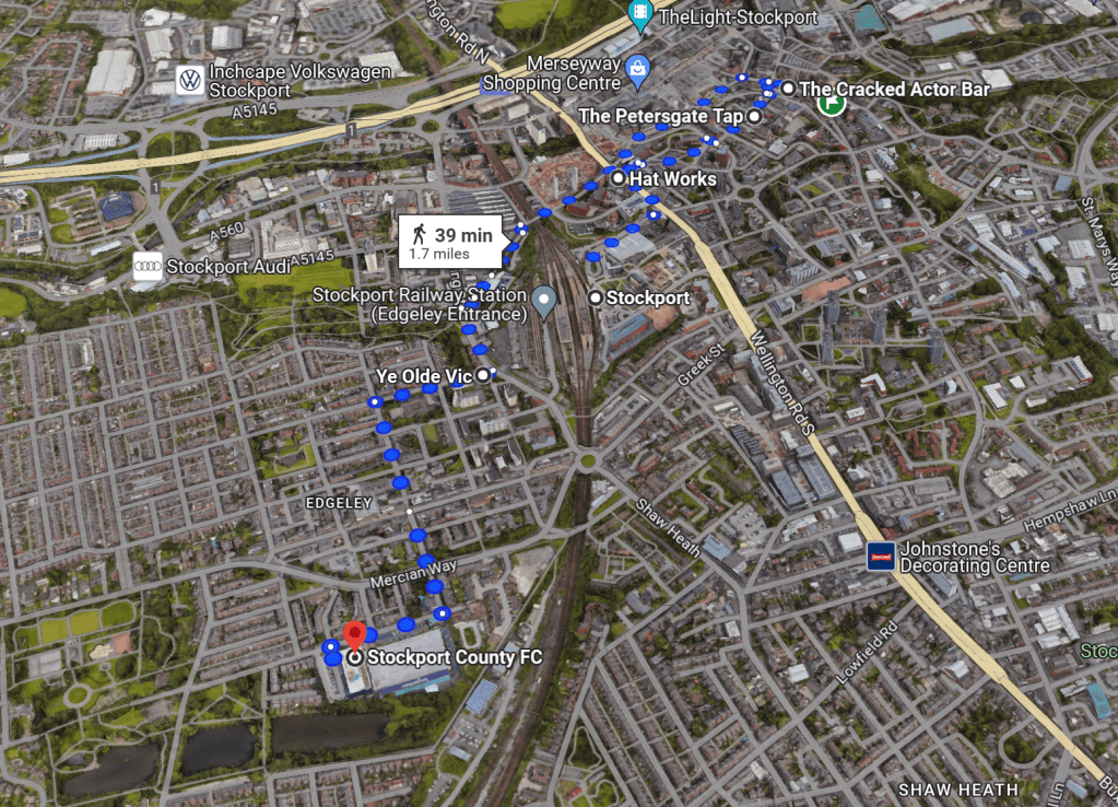 I reckon my fourth visit to this Stocky institution. 2002 – first ever Stockport pub crawl, 2012 – celebratory visit after City won the league, 2017 – pre-curry Christmas pint with the Southworth twins,