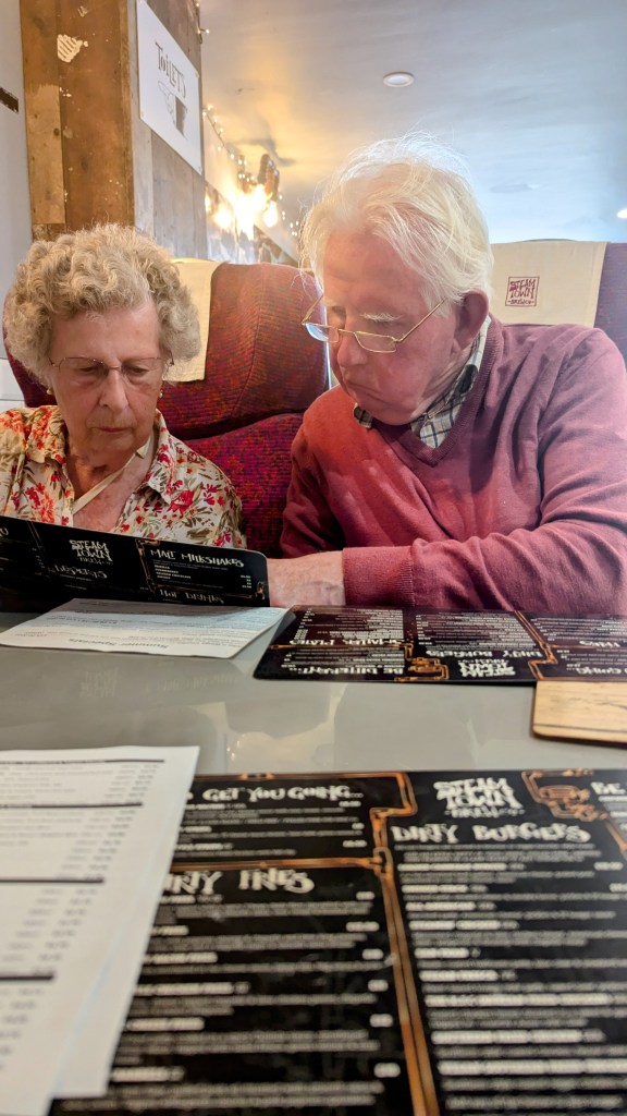 None of your high tables and beer barrels at Steam Town, those are actual first class train seats in the (notional) restaurant area.