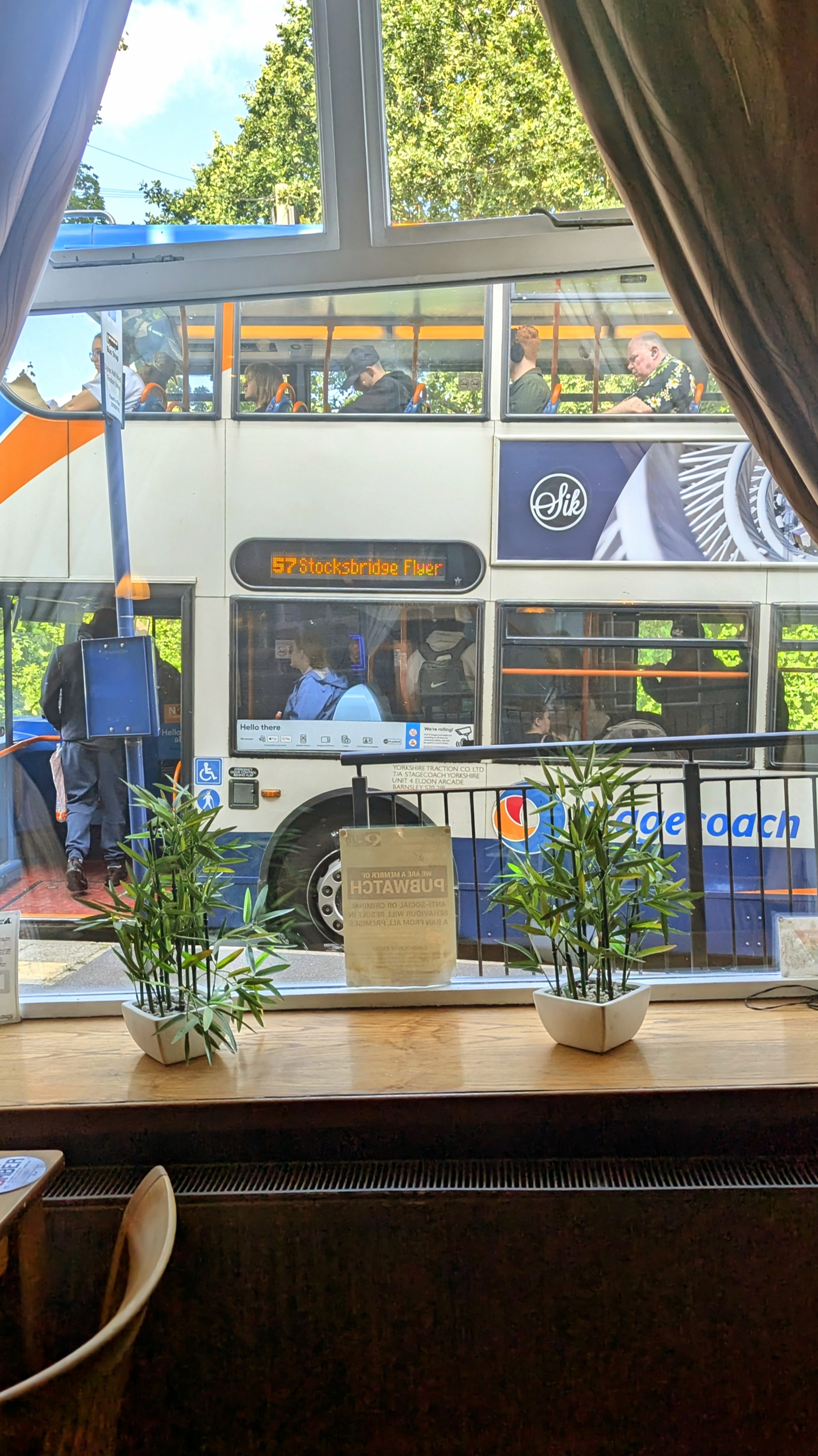 It’s so good Mrs RM insists on sharing a 2nd pint of 61 Deep, just that bit crisper than the first (who knew that beer gets better the more you sell ?), and watching the buses go uphill to the mysterious Stocksbridge.