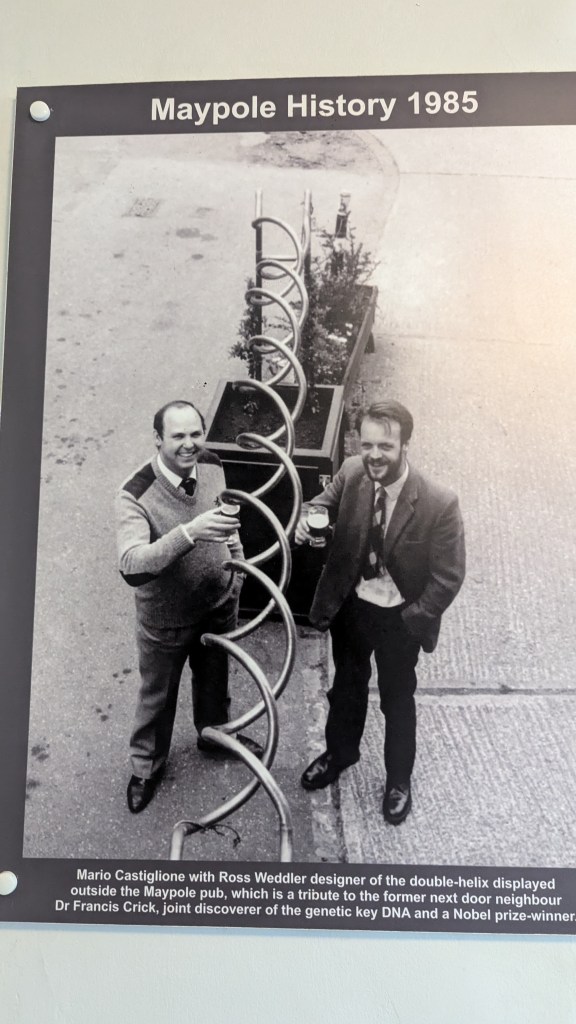 As we leave the Maypole a reminder that DNA was actually invented in Cambridge in 1953.