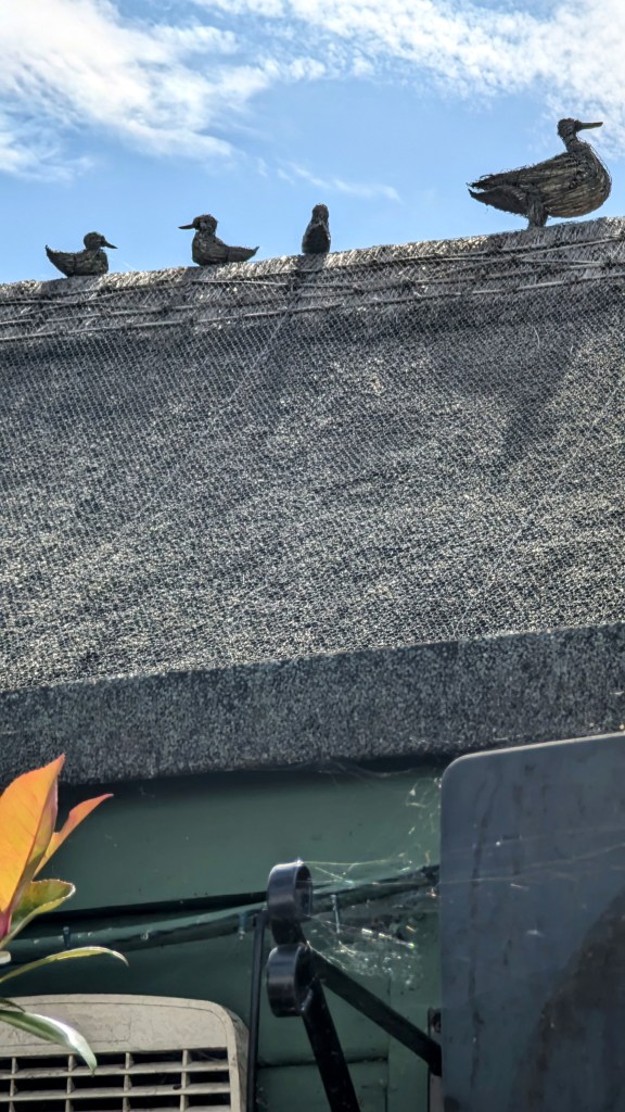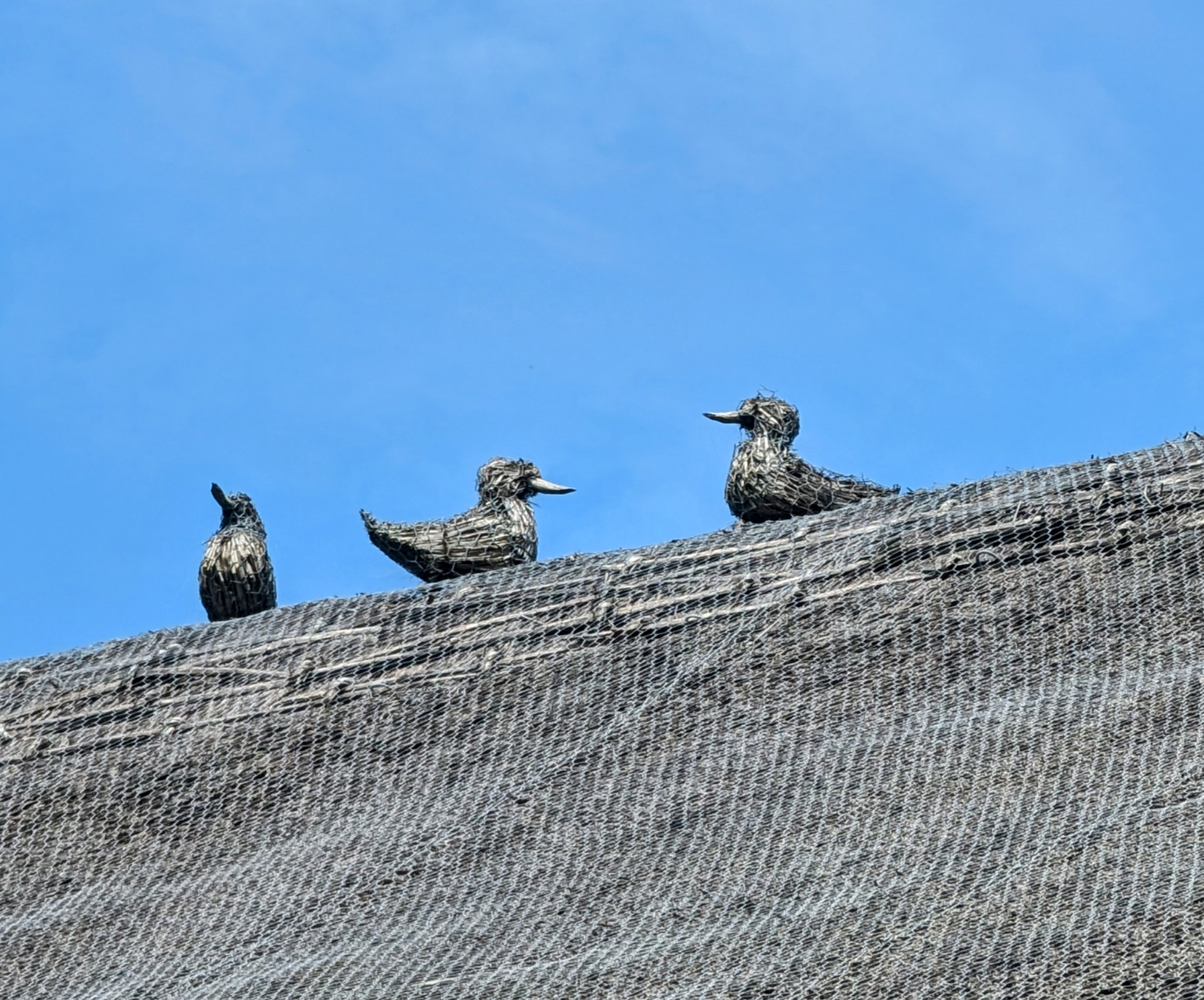 I know at least one (1) of my readers enjoys finials on thatched buildings so here for Dave is a close-up of the chickens on the roof.