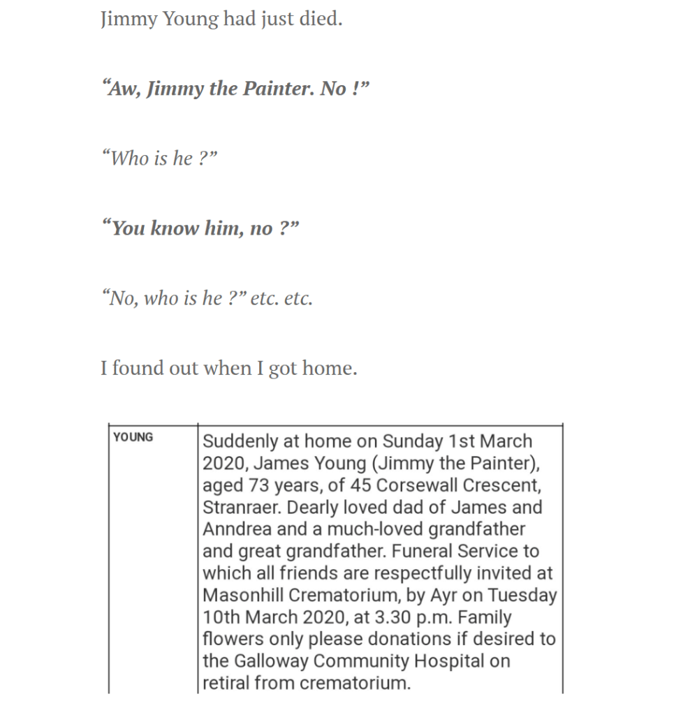 I was stunned to hear he’d never been to Dumfries, like in the Charlene song, but then I’d never visited that great pub town until 2018, when local gentlefolk woke us up in our motorhome at 6am and made us drive on, or face serious consequences (death by Ecclefechan tart, I think).