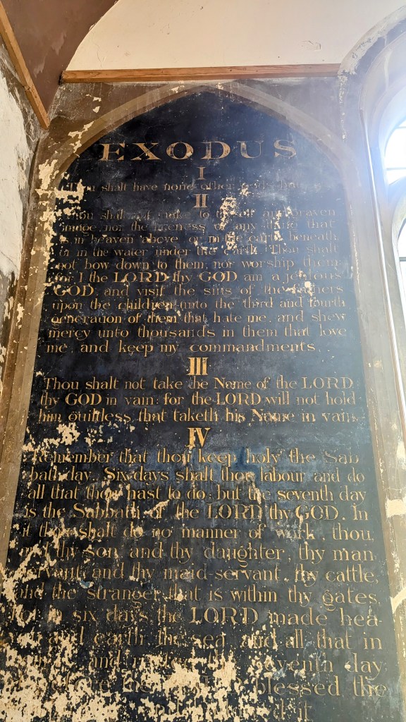 with its partial rendering of the 10 commandments. Modern churches are far too cuddly.