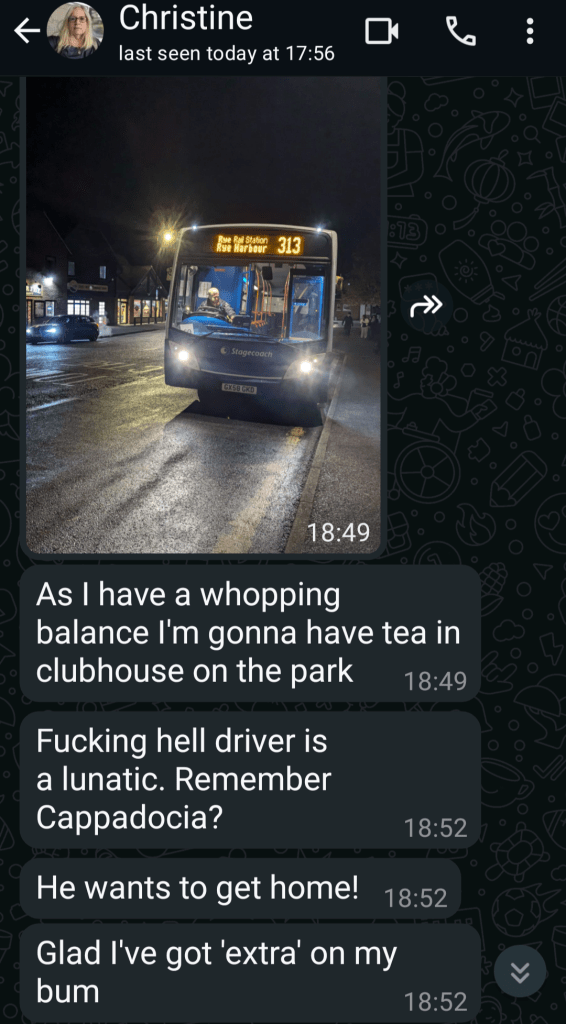 I get the impression that the holiday park clubhouse has a captive audience. I find Stagecoach bus drivers very good. They offer friendly greetings when you get on and leave the bus and they wait for passengers to sit down before they start off. However the bus suspensions and the roads do not help for a comfortable ride. Also bus maintenance seems to be lacking. I recently nearly missed my stop because the bell wasn’t working and yesterday the bus had a problem with the doors not opening.