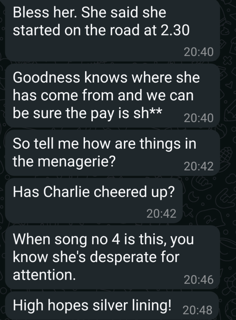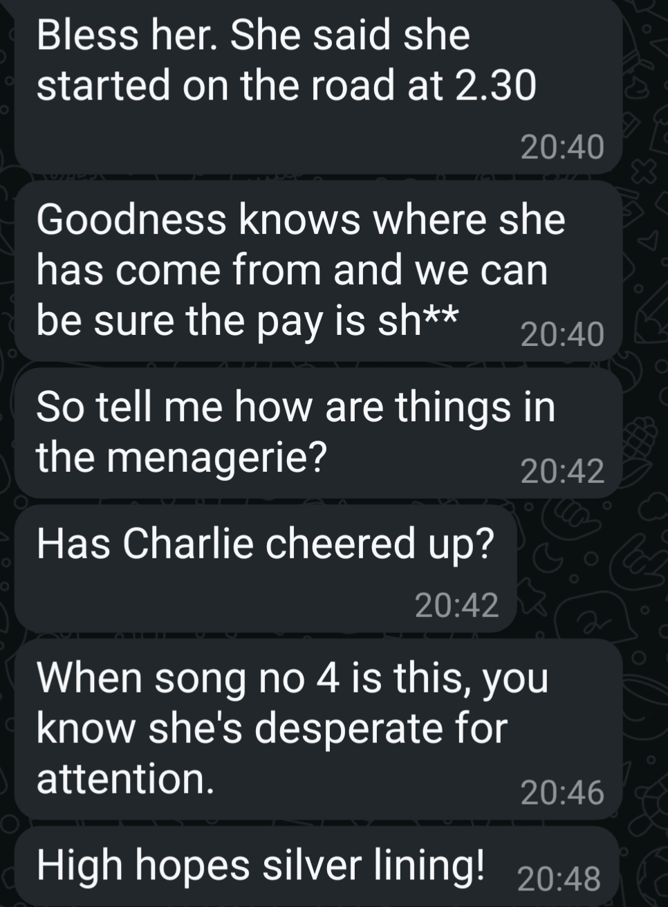 Mrs RM appreciates the enthusiasm, and with her unique musical knowledge I can only hope she didn’t sing along.