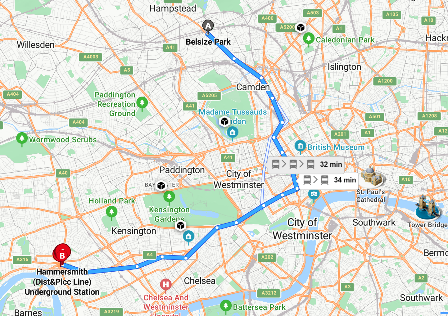 but once on the tube you’ve got a quick trip via Leicester Square to Hammersmith.