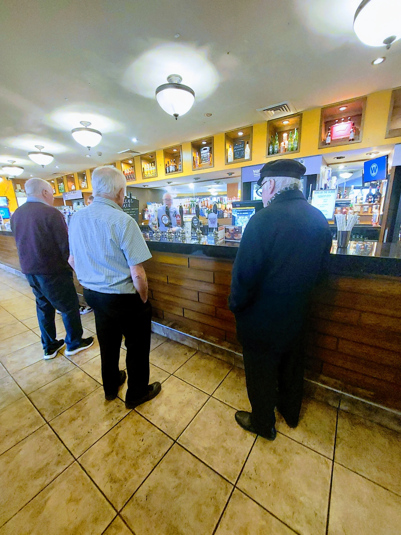 Great street art, a barman with a tie, Old Boys drinking “Speckly Hen”,