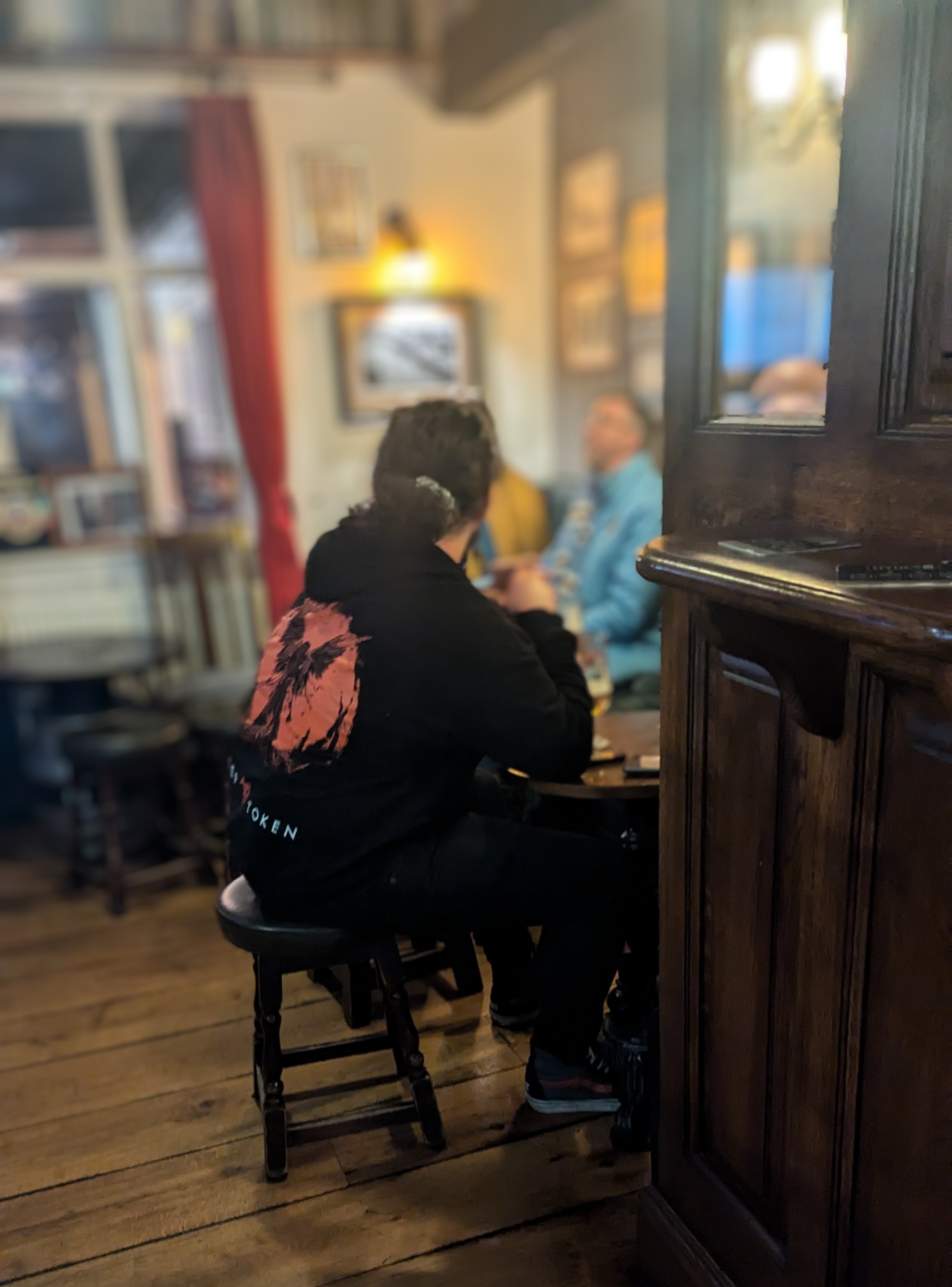 Mixed crowd, cool pint of Ruby Mild (3.5), eclectic soundtrack.