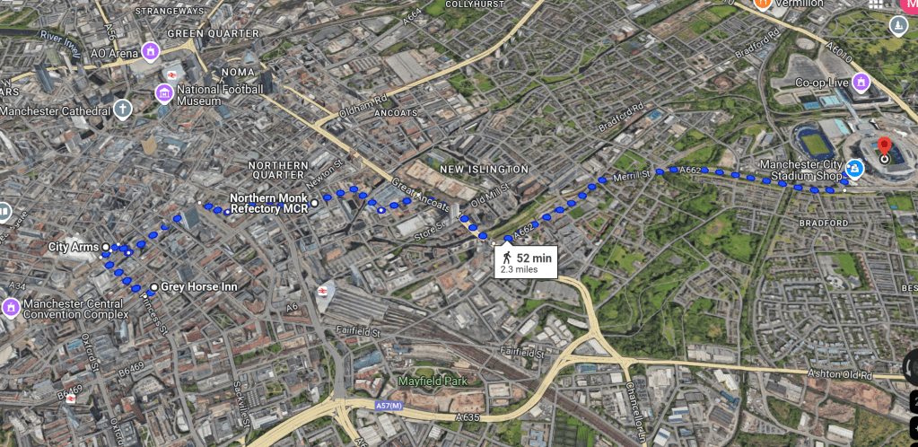 I can’t be bothered to do the research. Only had a half, just as well as we suddenly found ourselves needing to race to the Etihad and join the queue for a steak pie.