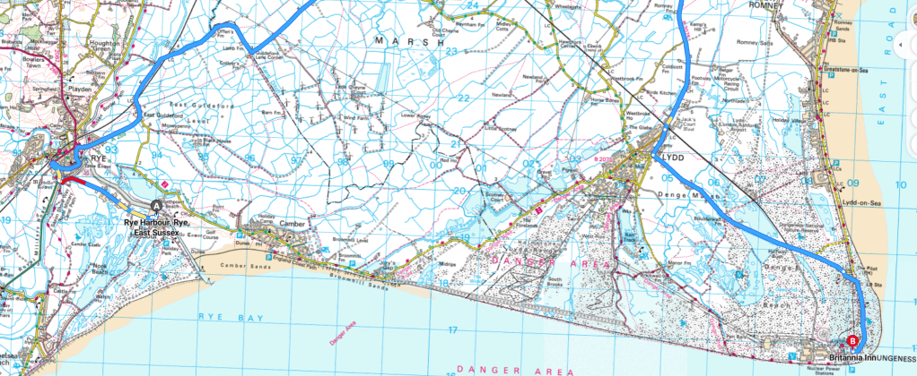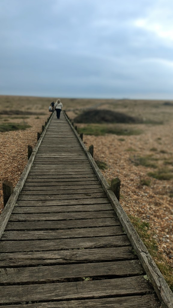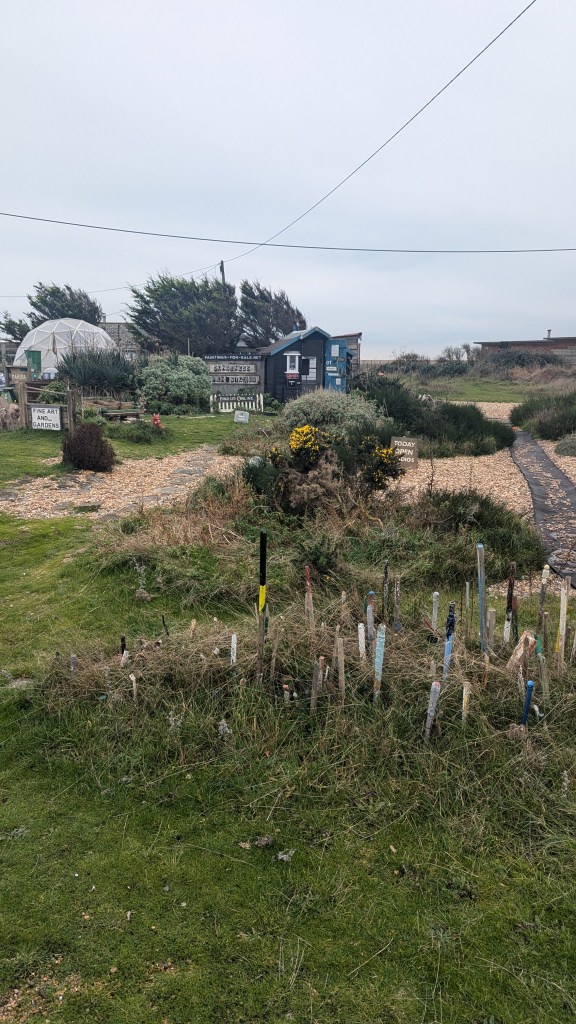 Plenty of undiscovered Kent and Sussex coast to explore from the base of Mrs RM’s Rye caravan; never been to Lydd. And oddly, until Saturday we’d failed to make it to Dungeness, which holds a strange place in the English psyche due to remoteness, the rolling (?) marsh, a desolate but beautiful shingle beach, and a power station. Like Spurn Head with a nuclear device.