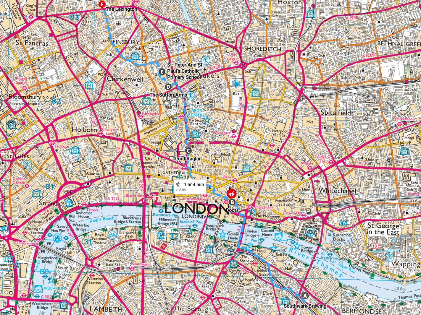 Walking past the London Museum now needed a pint. And a wee. I knew just the place.