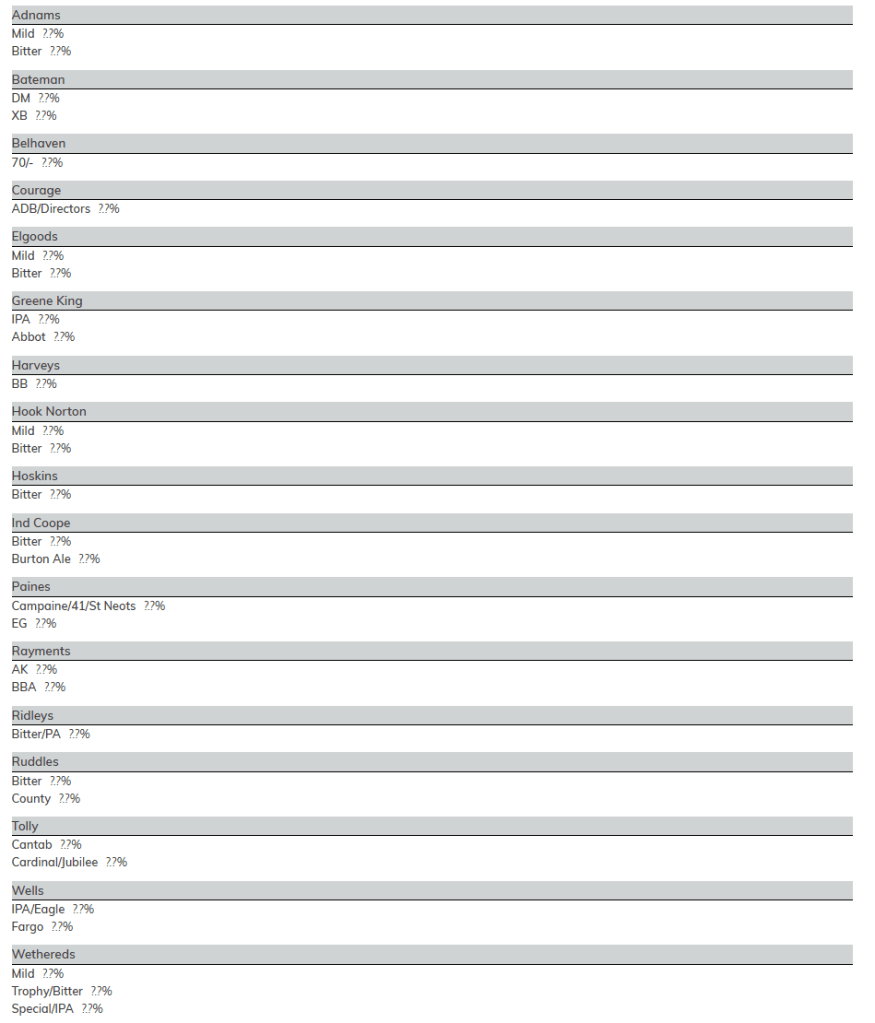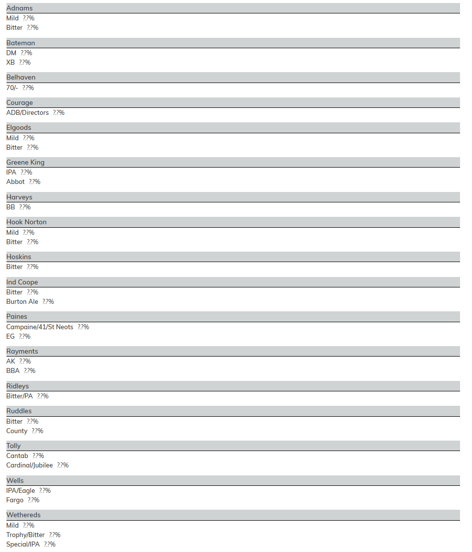 Very interesting list from (I guess) 1977. Burton Ale would have been new then, and I suspect the Hoskins would also have been well in demand. So many of those beers were regionals where the drinker often had to search them out, not just wait for them to turn up at the local JDW.