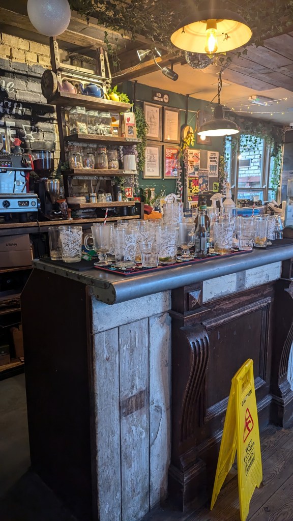 A good time to appreciate the walls of this old skool bare boards student pub.