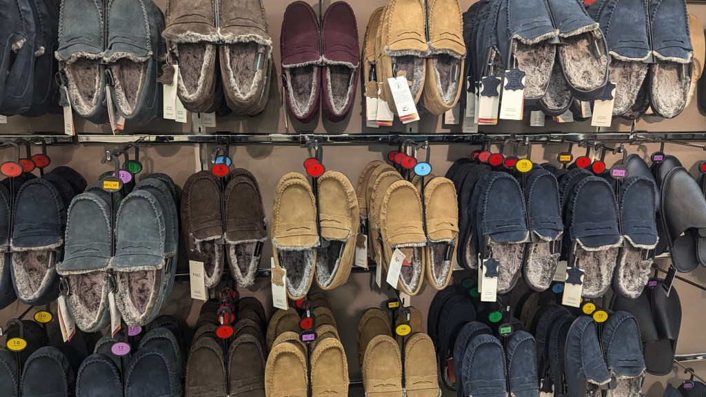 Five (5) shops I visited in Cambridge looking for size 12 velcro slippers, finally tracking them down in Marks & Spencers in the underwhelming market place.