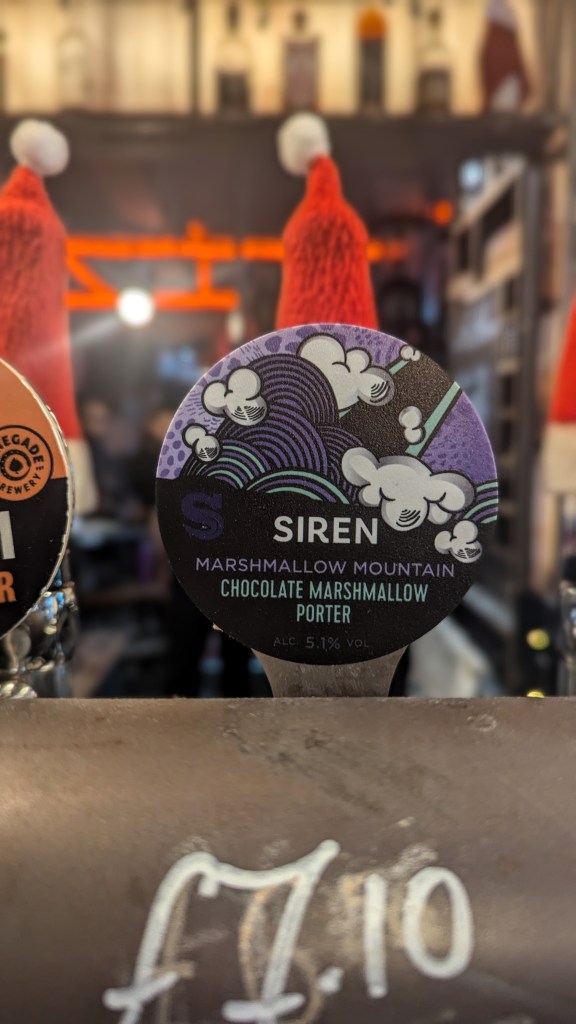 I popped in Slingers, a darts themed bar on the station approach, drawn in by the promise of Chocolate Marshmallow Porter,