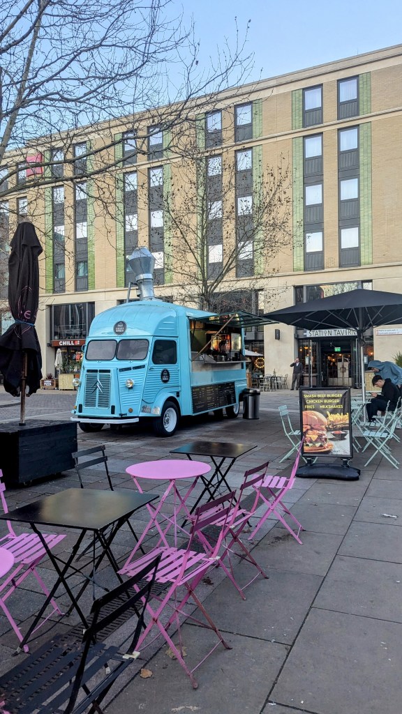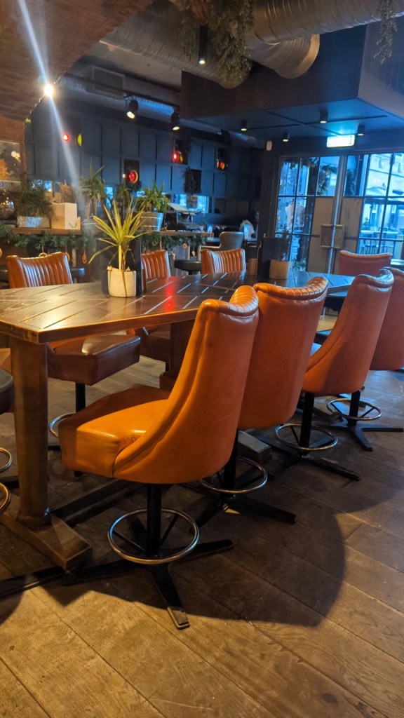It’s a characterless modern bar, but as busy as I’ve ever seen it, family groups and mates meeting for Christmas.