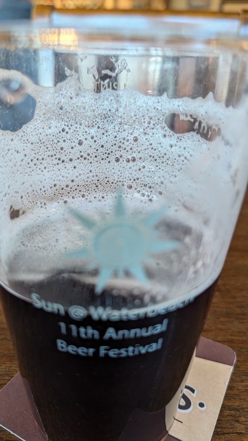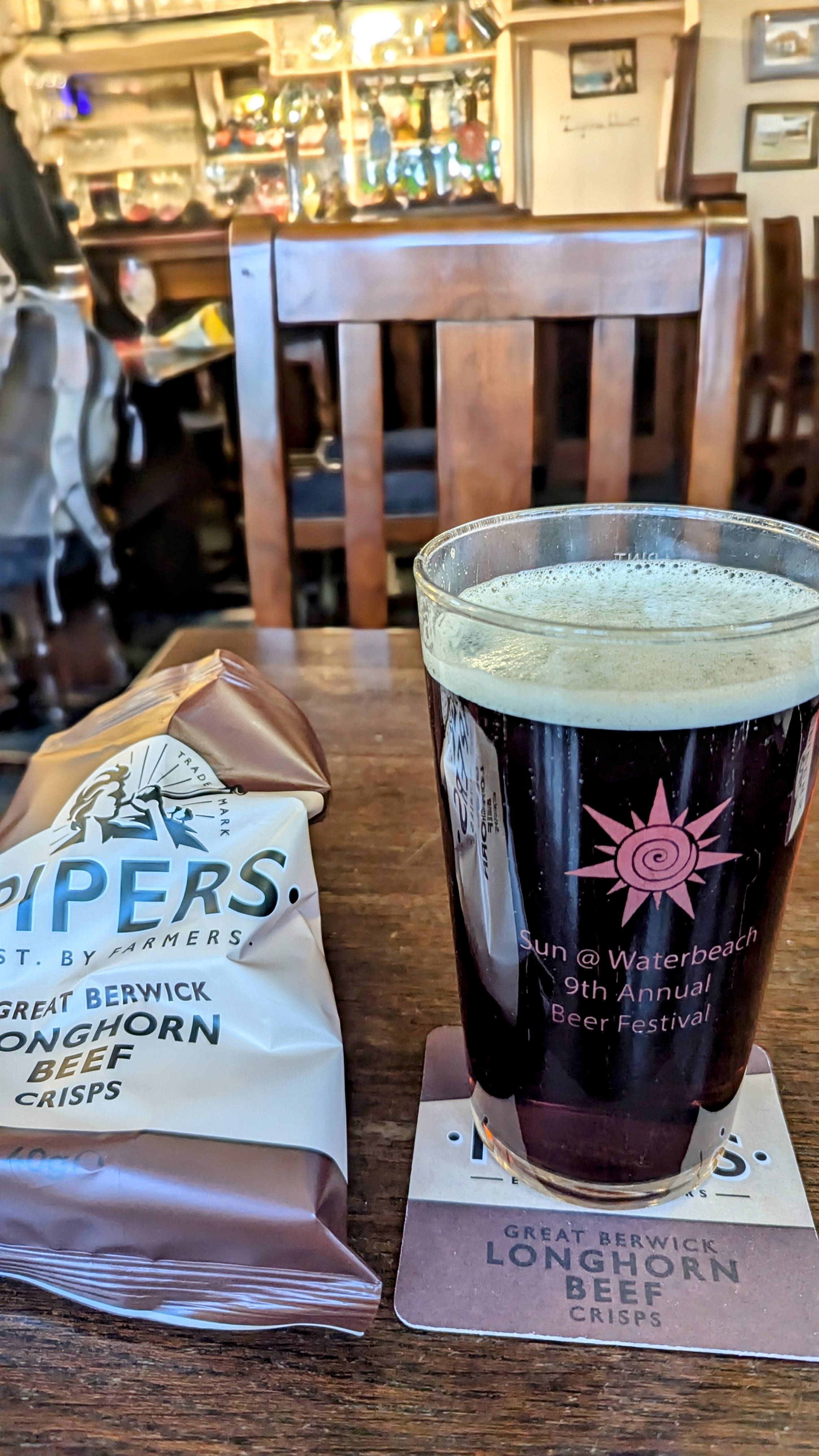 I stopped for a second, another Greene King Winter Ale. Look at the head on that beer (top), a scummy coating that shouts “chewy”. I don’t have a clue about the mechanics of beer but that’s what I want beer to look like.