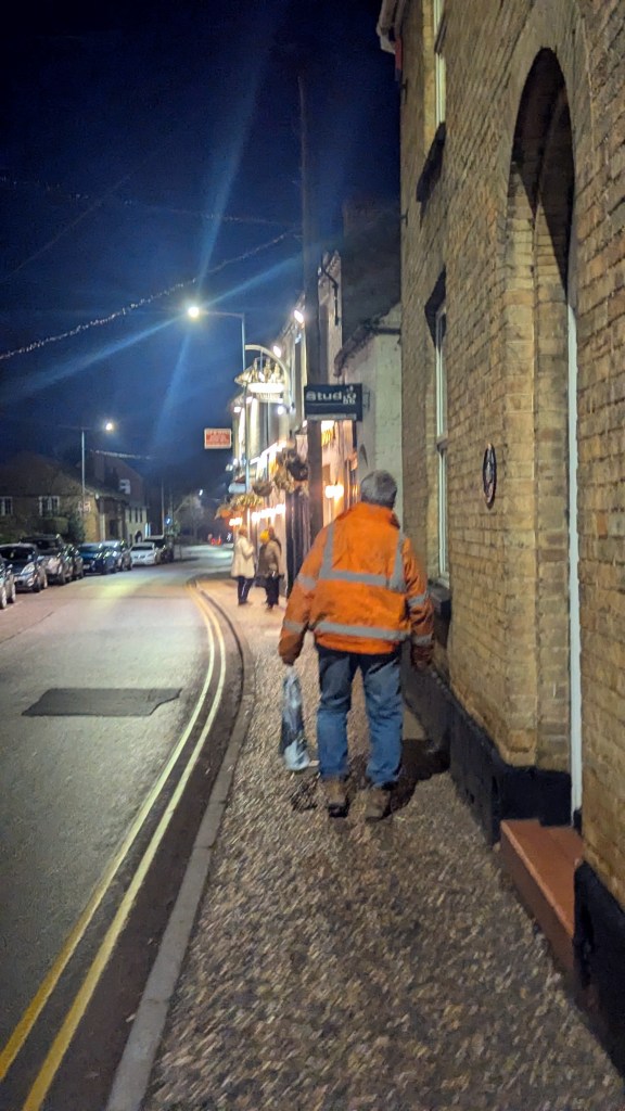 Bit late for hi-vis in pub isn’t it? Thought prime time was 15:45. He must be out out.