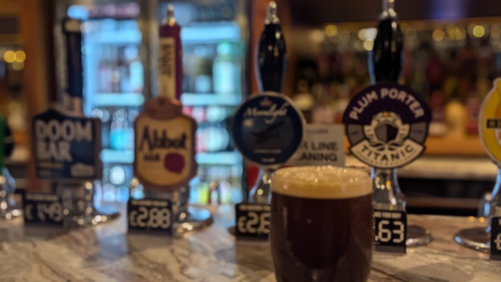 Not that I’ve been one for using Tim’s venues these past few years but last Wednesday should have been a reunion in Stafford for which my Liverpool friend had suggested meeting in the Picture House before backing out for an MRI scan instead that day but I went anyway as I wasn’t sure my Wolverhampton friend knew it was cancelled. Anyway, they had that Arkells Moonlight on and I had two pints with tuppence change out of £3. With a pint in Swindon on my way to Bath last autumn that makes three pints of Arkells I’ve drink in several years.