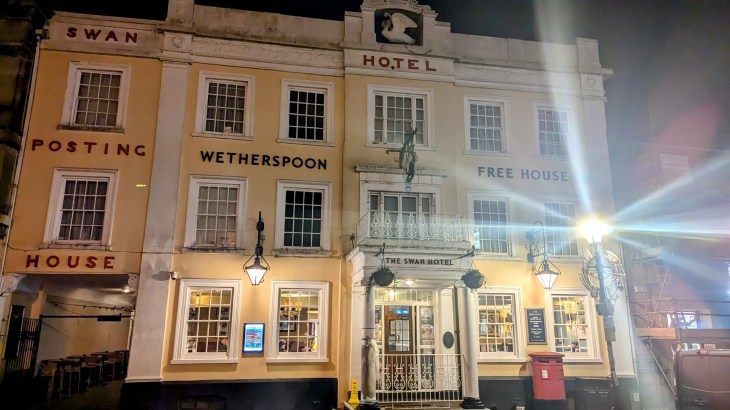 Cheaper hotel prices have pushed down UK inflation a bit, and Wetherspoons have a few offers (£59) in January. I’d been wanting to stay at the Swan for years. It gave us our first uninterrupted nights sleep in months.
