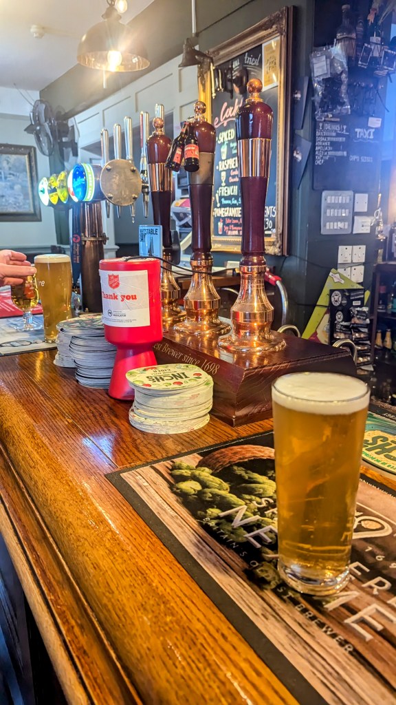 No Master Brew, no Spitfire, no Samuel Adams, just a forlorn hand pump hidden behind the beer mats and Sally Army tin dispensing a tired Whitstable Pale (NBSS 1.5).