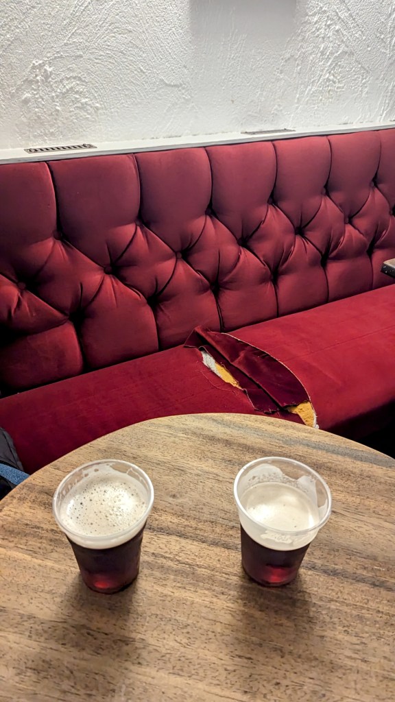 Will wonders how it gets in the Guide when the 8JB doesn’t, I chastise him for questioning the judgement of local CAMRA. Wherever it’s come from, the Exmoor is decent enough. Even in a plastic cup.