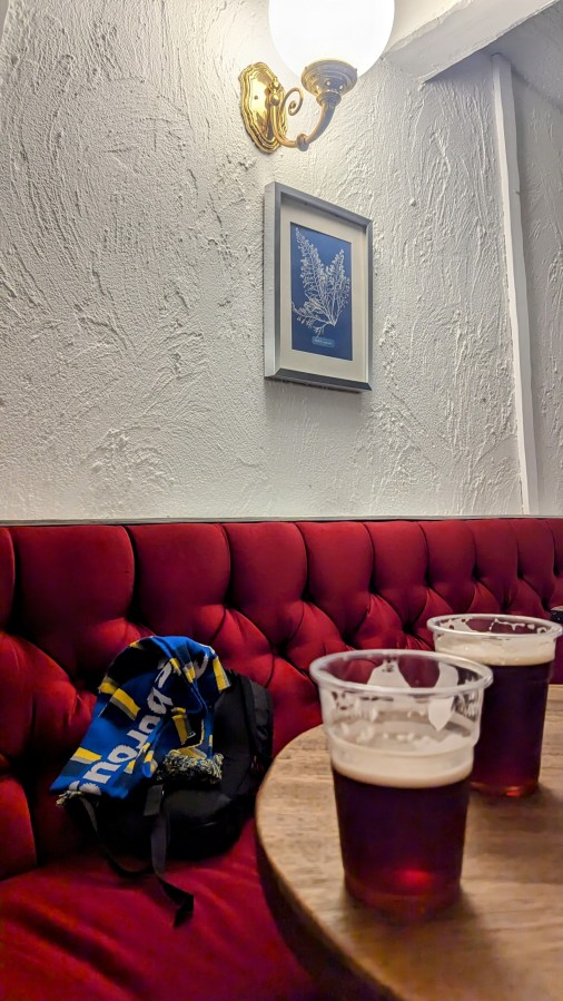 Only five minutes walk from the Eight Jolly Brewers to the Trinity’s ground; I know CAMRAs who’d have taken a taxi.