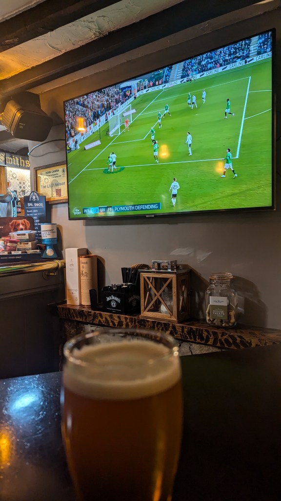The Nelson is packed with dads and lads about to watch the rugby, having just seen Plymouth stuff the Scouse bus-wreckers at a jubilant Home Park.