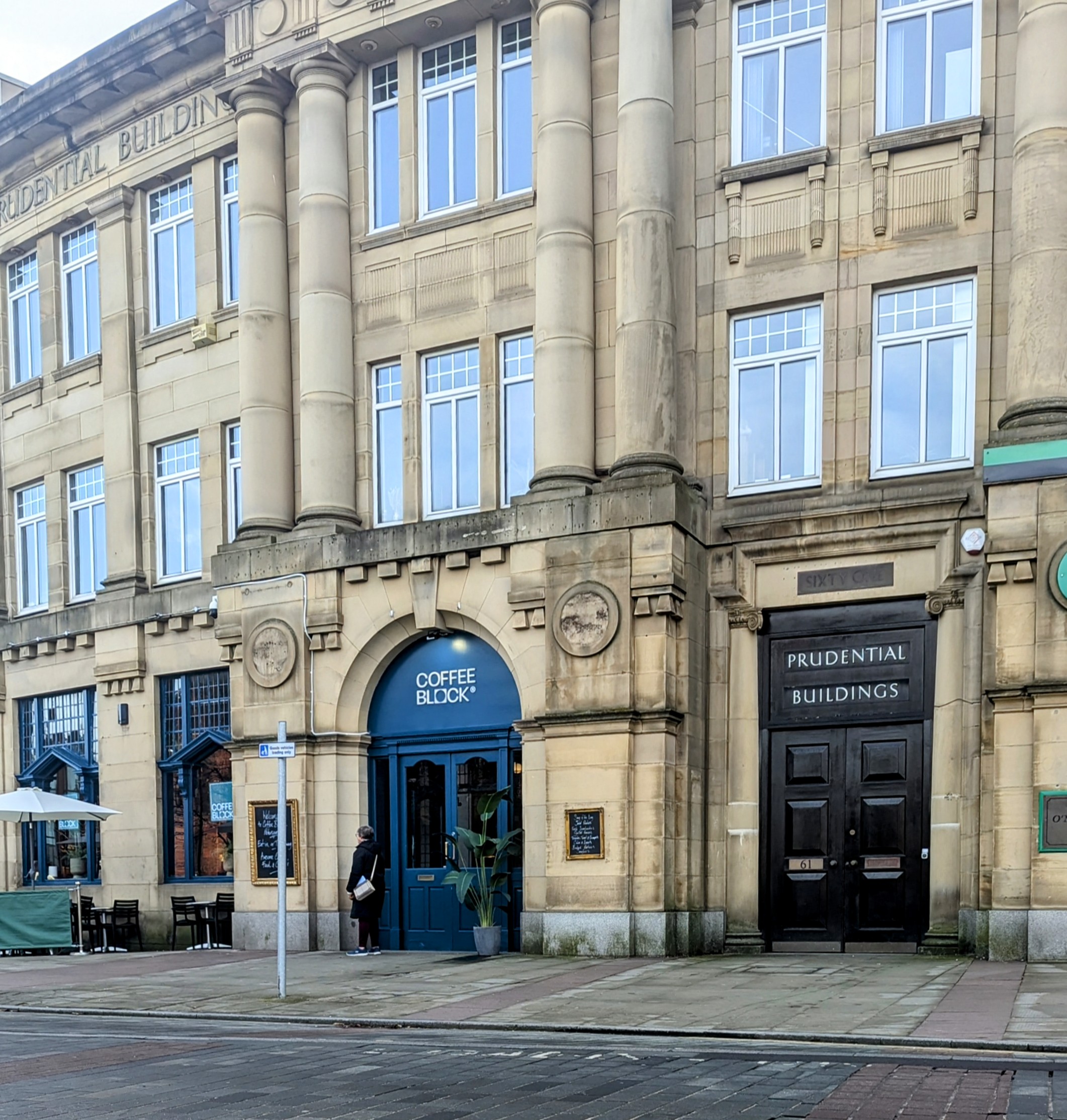 Thinking of foxes, being bright-eyed and bushy-tailed only lasts so long on Travelodge instant coffee, so let’s try the new Coffee Block in another early 20th century setting, on St Petersgate.