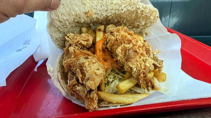 where you’re suddenly glad you kept back those two 1 Lei notes for the loo (“a lei for the loo” ?), and immediately regret ordering the Crispy Chicken Sandwich With Fries just before a 3 hour coach trip.