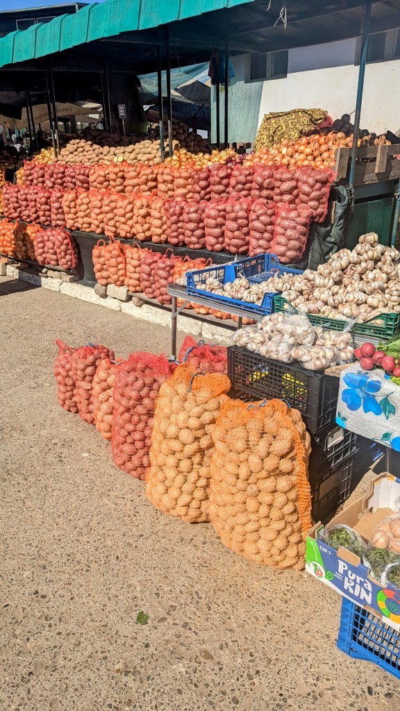The No. 28 then gives us a complete circuit of inner Iasi in squashed carriages designed to prevent you validating your ticket. Jump off at Bun Market which has the biggest displays of onions and goats cheese in Europe,