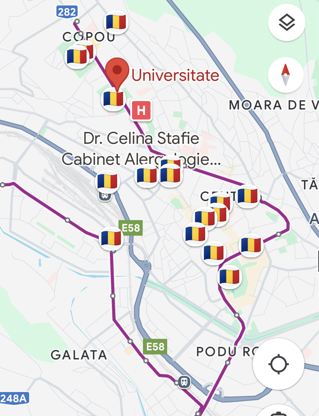 Mrs RM had put little Romanian flags on the Google map, marking the must-sees. The highlights that weren’t churches or craft bars were around the stately University, where the trams took us now.