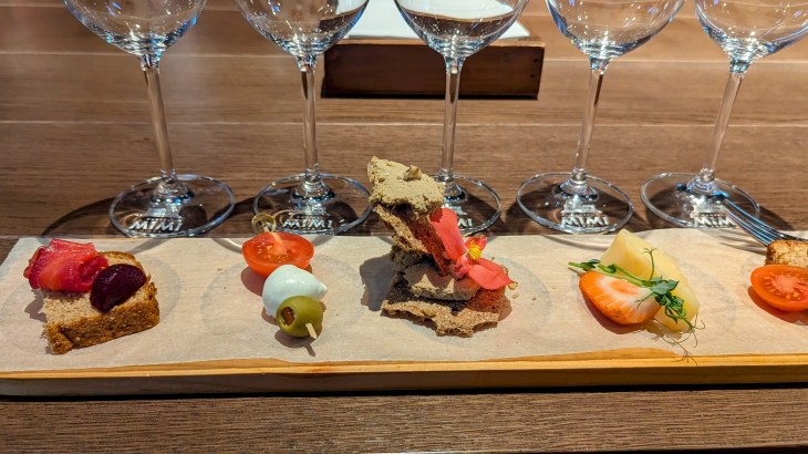 but the wine tasting itself was a rather grander affair, five wines matched with the sort of pub grub you don’t get at the Stile in Wolverhampton.