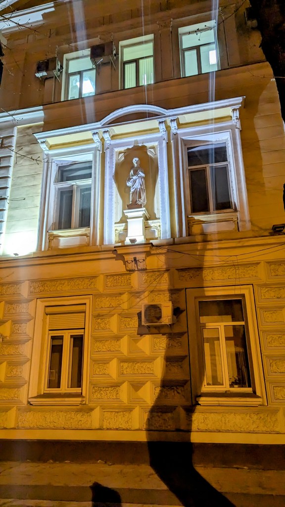 I didn’t feel like staying for another so popped in the mini-supermart across the road where students were dropping bottled of Moldovan road and buying snacks.