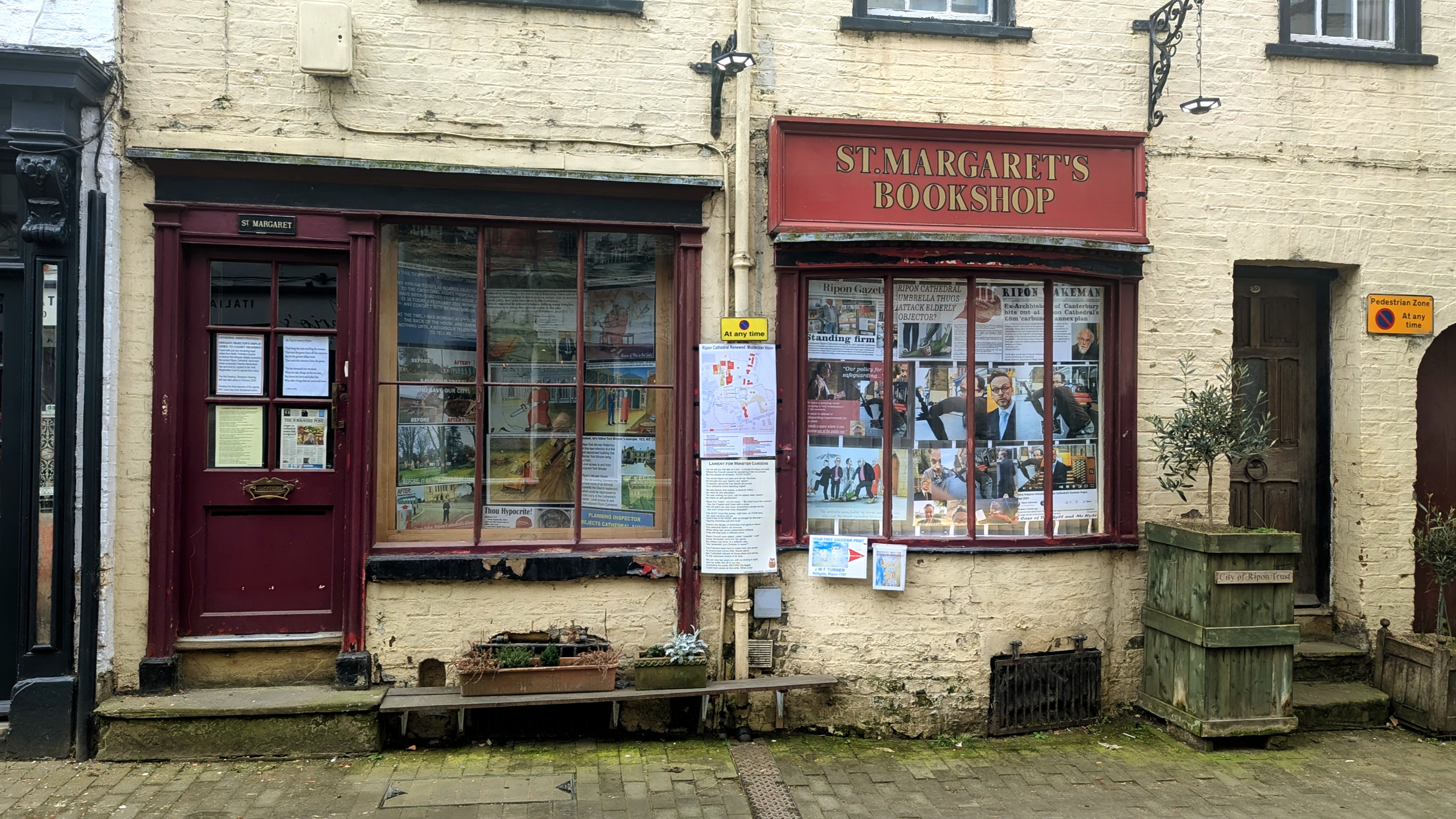 I wasn’t the only one thinking the church had gone too commercial, the windows of the former St Margaret’s bookshop festooned with rants against a planned cathedral annexe*.