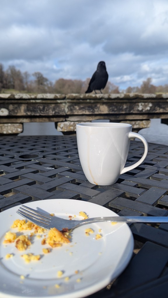 At the Studley tea room I had a shock as Mrs RM turned down my offer of drizzle cake; the unidentified bird waited for crumbs.