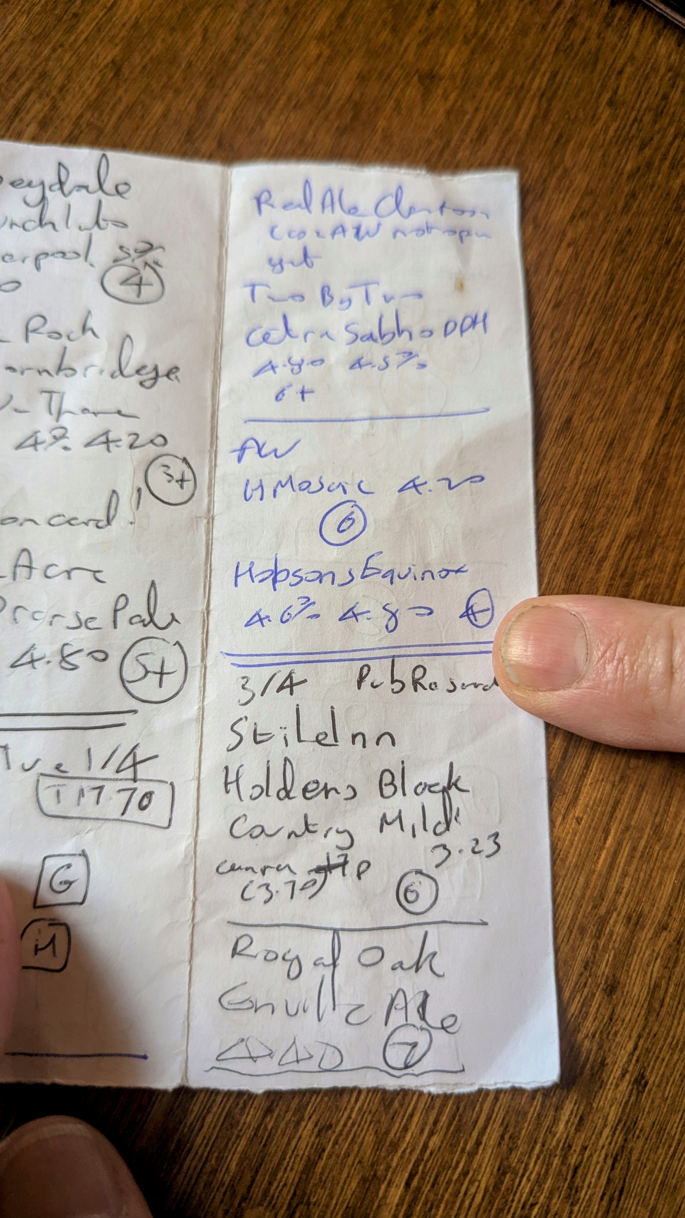 Not my notes, Martin. (I didn’t have Holden’s Mild in the Stile and I only had a half of Enville in the Royal Oak.) You’re right, though. No way would I sell my notes to Wetherspoons.