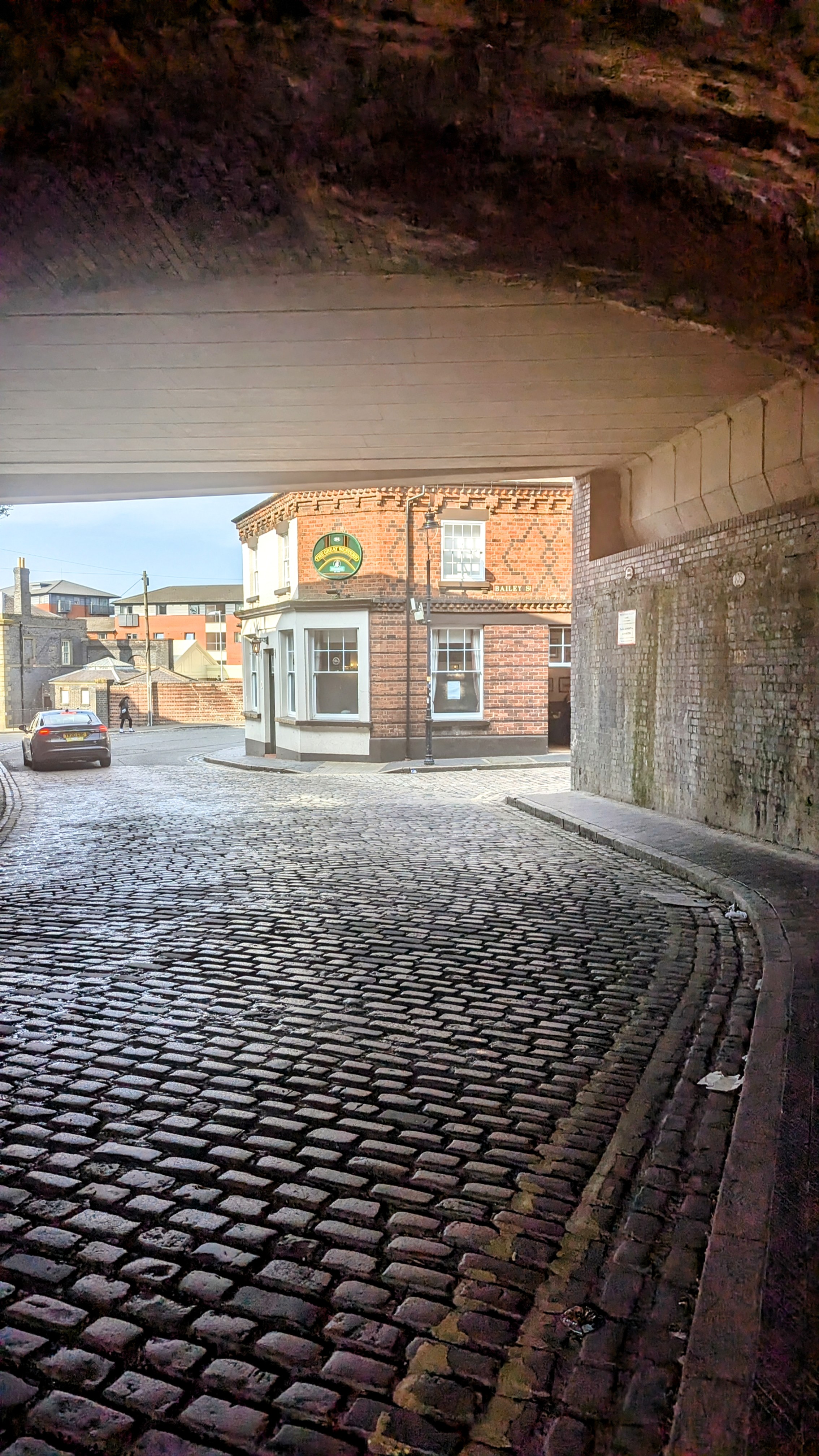 I approached the Great Western from that direction when I went to it more than a decade ago, leaving the main entrance of the railway station and then going under that bridge. It was dark and rainy and for some reason it reminded me, at least externally, of the prole pub Winston Smith goes to in George Orwell’s Nineteen Eighty-Four.