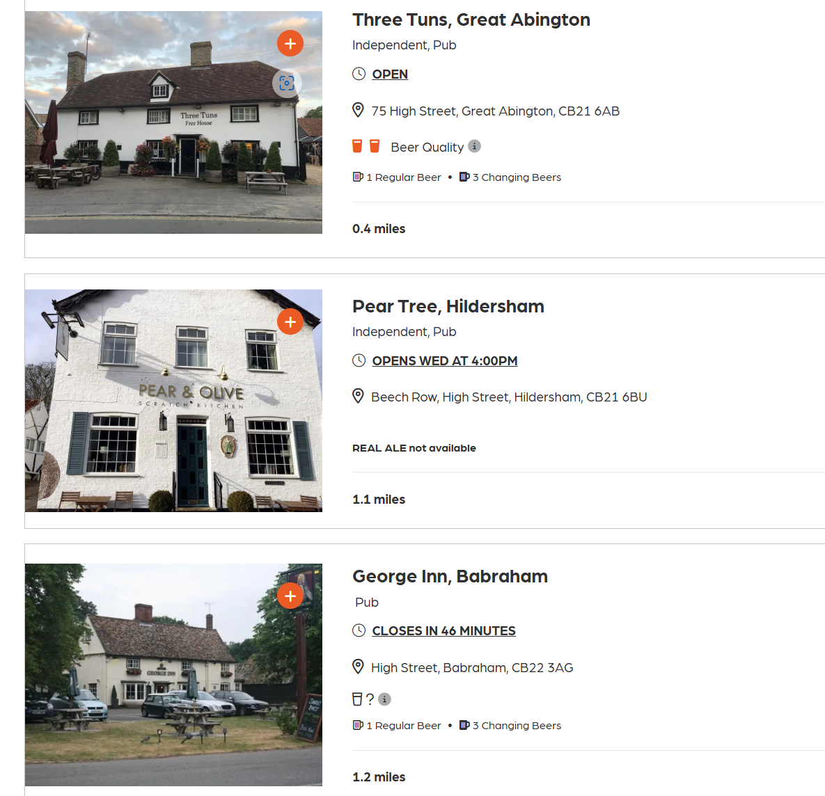 Three pubs within a mile, three of the most food focused in all South Cambs; you’re not getting a midnight pint there, Matt.