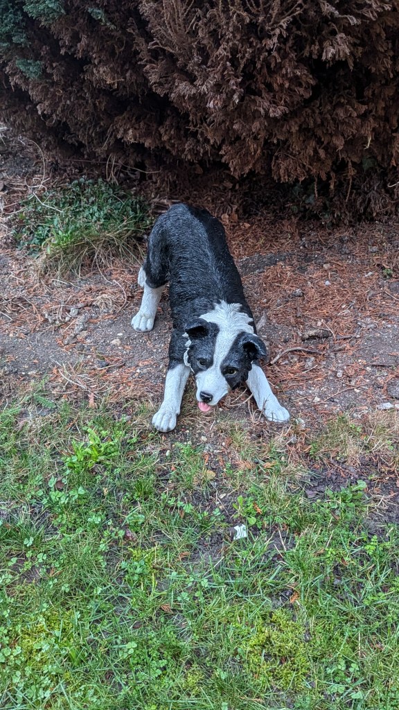I knew nothing about Menston, perhaps there’s nothing to know. The bloke who invented Lassie, seen here standing guard outside Dad’s care home window,
