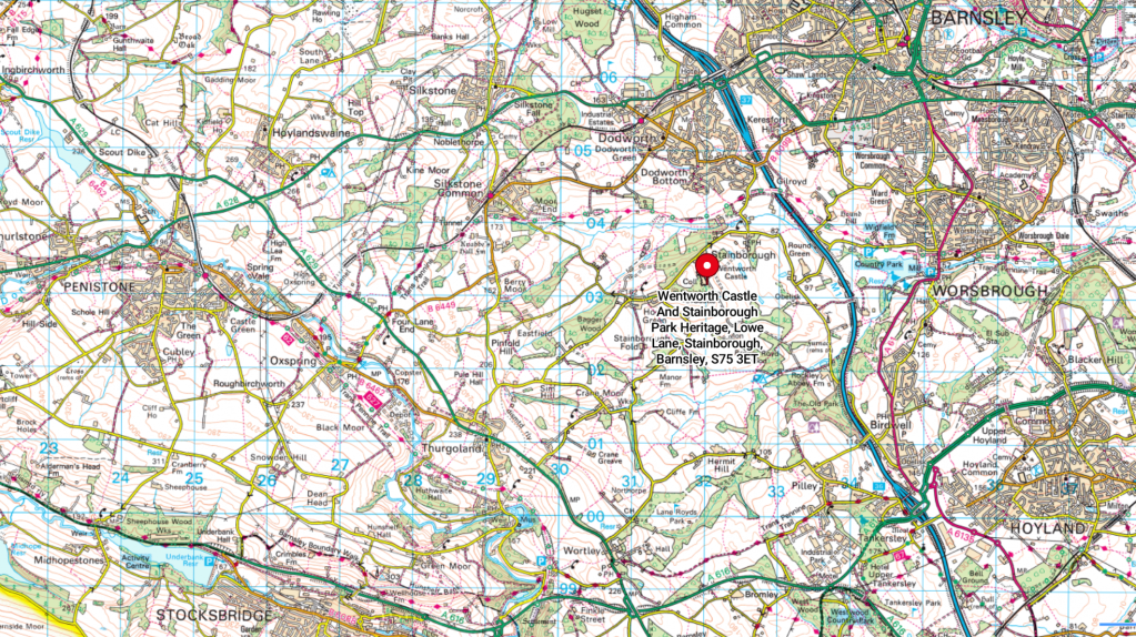 Hard to describe where Wentworth Castle Gardens are, particularly with another Wentworth east of the M1, and “south of Dodworth” will leave you none the wiser, I guess.